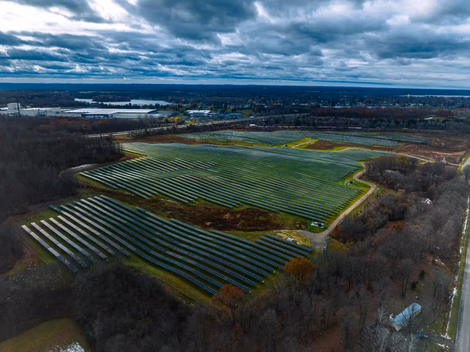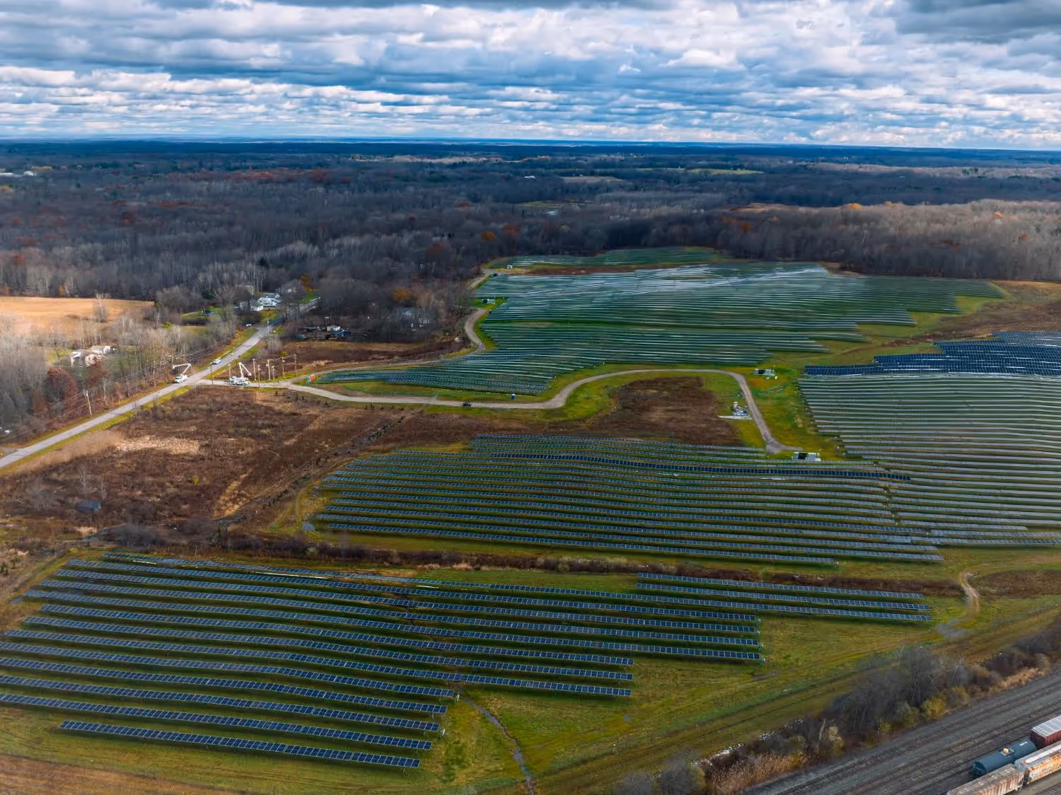 The Volney Solar Farm sits on 61 acres about 30 minutes northwest of Syracuse, NY. The full development consists of two co-located community solar projects participating in NY Value of Distributed Energy Resources (VDER) program. These projects will enable local residents to benefit from clean energy by subscribing to the solar farm, and receiving bill credits to offset their National Grid electric charges. AMS provided turnkey engineering, procurement, and construction services on the Volney Solar Farm, from preparation of construction ready plan sets through to commissioning and testing. Due to the presence of glacial till observed during pull testing, this 2P single-axis tracker was designed with ground screw foundations to mitigate subsurface risk and the glacial till that was encountered during pull testing.